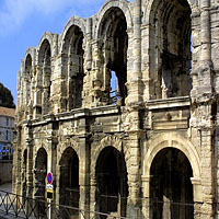 Arles offre un exemple intéressant d’adaptation d’une cité antique à la civilisation de l’Europe médiévale. Elle conserve d’impressionnants monuments romains dont les plus anciens – arènes, théâtre antique, cryptoportiques – remontent au Ier siècle av. J.-C. Elle connut au IVe siècle un second âge d’or dont témoignent les thermes de Constantin et la nécropole des Alyscamps. Aux XIe et XIIe siècles Arles redevint une des plus belles villes du monde méditerranéen. A l’intérieur des murs, Saint-Trophime avec son cloître est un des monuments majeurs de l’art roman provençal.