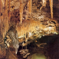 Par un tunnel, on accède facilement à cette immense voûte souterraine aux parois ornées d’une multitude de cristallisations d’une densité exceptionnelles.