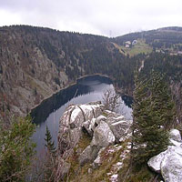 Ce petit lac est l’un des plus beaux lacs vosgiens. Ses eaux sombres abandonnées dans une petite dépression glaciaire quasi circulaire reflètent les mille nuances de vert de la forêt de sapins et les dégradés de gris d’un chaos rocheux aux pentes vertigineuses.