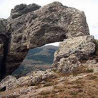 Aux confins des communes de La Motte d’Aveillans et de Pierre Châtel, non loin de la Mure, la Pierre Percée est une des curiosités géologiques les plus étonnantes de notre région. Haut lieu touristique de la Matheysine, cet arc naturel due à l’érosion des calcaires triasiques est classé parmi les 7 Merveilles du Dauphiné, perché sur la colline des Creys à plus de 1 270 mètres d’altitude, offrant, un somptueux panorama sur le plateau Matheysin. Comme son nom l’indique, cette roche a été creusé au fil des temps par érosion, jusqu’à former une sorte d’arcade naturelle dont l’évasement de l’ouverture mesure 5,50 mètres, au niveau du point central, la voûte s’élève à 3 mètres de hauteur. Lorsqu’on la contemple de loin, sa silhouette modelée par la main de Dame Nature évoque une sorte d’énorme monstre accroupi, comme figé pour l’éternité dans la roche. Ce qui à fait naître de nombreuses légendes « dragon au repos sur ses pattes de devant ». Le panorama à partir du site permet de découvrir une large partie du plateau matheysin, les lacs de Laffrey, Petichet et Pierre-Châtel, les sommets du Grands Serre, du Grand Vent, du Coiro, de l’Obiou, du Mont Aiguille (une autre des Sept Merveilles Naturelles du Dauphiné), le Vercors et plus loin la chartreuse et la station de Chamrousse.