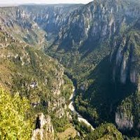 Les gorges de la Jonte, confluent du Tarn, coup de sabre entre le Causse Méjean et le Causse noir, offrent aux grimpeurs de belles falaises sauvages, hantées par les vautours fauves.
