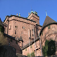 Le site du Haut-Koenigsbourg sans doute l’un des plus visités des châteaux médiévaux français, peut rebuter l’amateur d’architecture inviolée. Mais cette reconstruction totale est intéressante; elle montre l’influence d’architectes d’une grande érudition, tels Viollet-le-Duc et Bodo Ebhardt, qui se laissèrent aller à une improvisation libre sur substrat de ruines pour bâtir des folies médiévales à l’usage de leurs maîtres d’ouvrage. À cinquante ans d’intervalle, Pierrefonds et le Haut-Koenigsbourg témoignent, en définitive, du même élan créatif basé sur la pire des idéologies : celle de la nation dominante. Mais ce site, vu au travers du prisme archéologique, est extrêmement révélateur de l’extraordinaire partage du sol dans l’Alsace médiévale, où la construction de deux châteaux antagonistes, à moins de 100 m de distance, ne choquait pas.