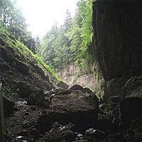 Grotte du Brudour du pont sur le Brudour, promenade de 1/2 h à pied AR. Un très agréable sentier mène à cette cavité, résurgence des eaux tombées dans les parages d’Une. Le Brudour lui-même ne tarde pas à s’engloutir, à son tour, en aval, dans de nombreux « scialets » Il réapparaît définitivement, sous le nom de Cholet, au fond du cirque de Combe Laval. La galerie de gauche peut être parcourue avec une lampe jusqu’à une 3e salle qui comporte un petit lac (1/2 h AR).